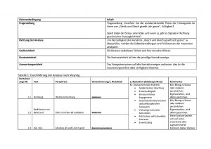 Im Folgenden soll eine Inhaltsanalyse nach Mayrings zusammenfassender Inhaltsanalyse durchgeführt werden. Nachdem die grundlegenden Rahmenbedingungen festgelegt wurden, erfolgt die Analyse in drei Schritten: (1) Paraphrasierung, (2) Generalisierung und erste Reduktion und (3) zweite Reduktion (s. Kapitel 6.5.6 Die Inhaltsanalyse nach Mayring).